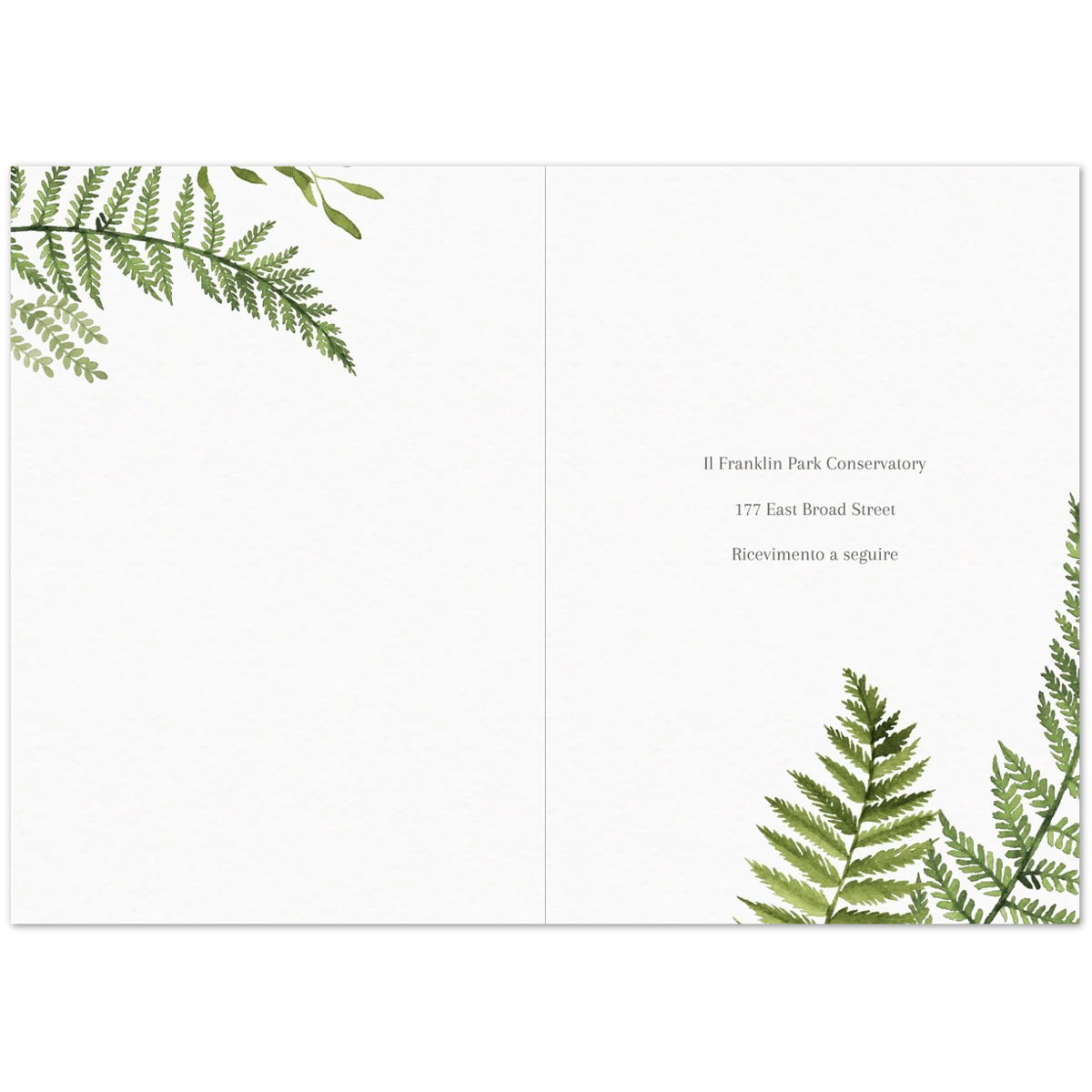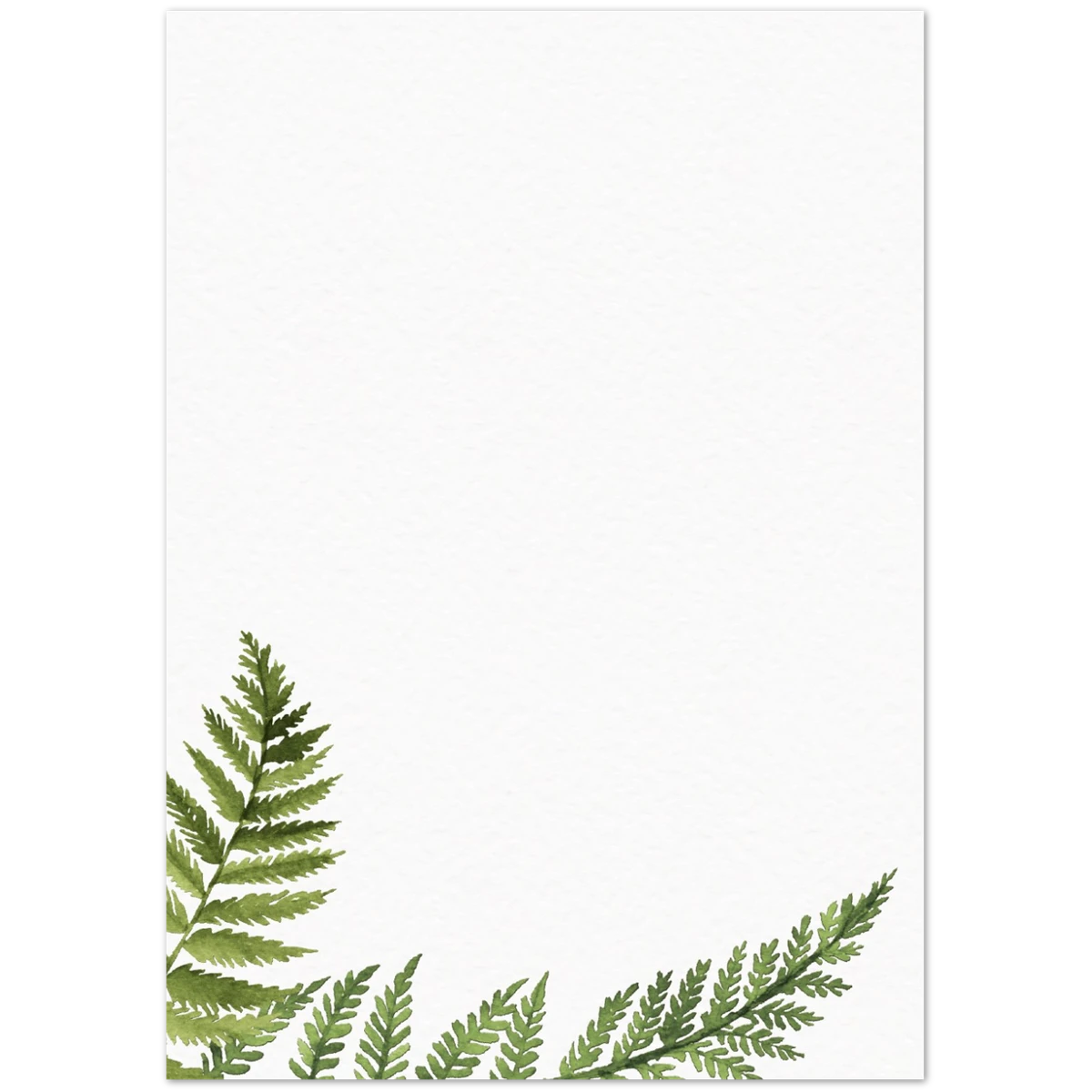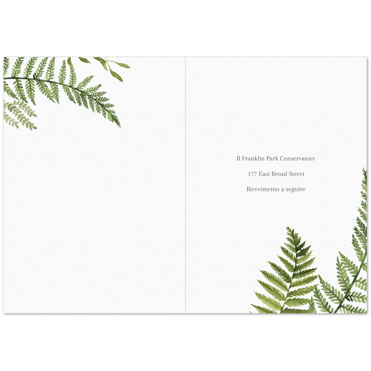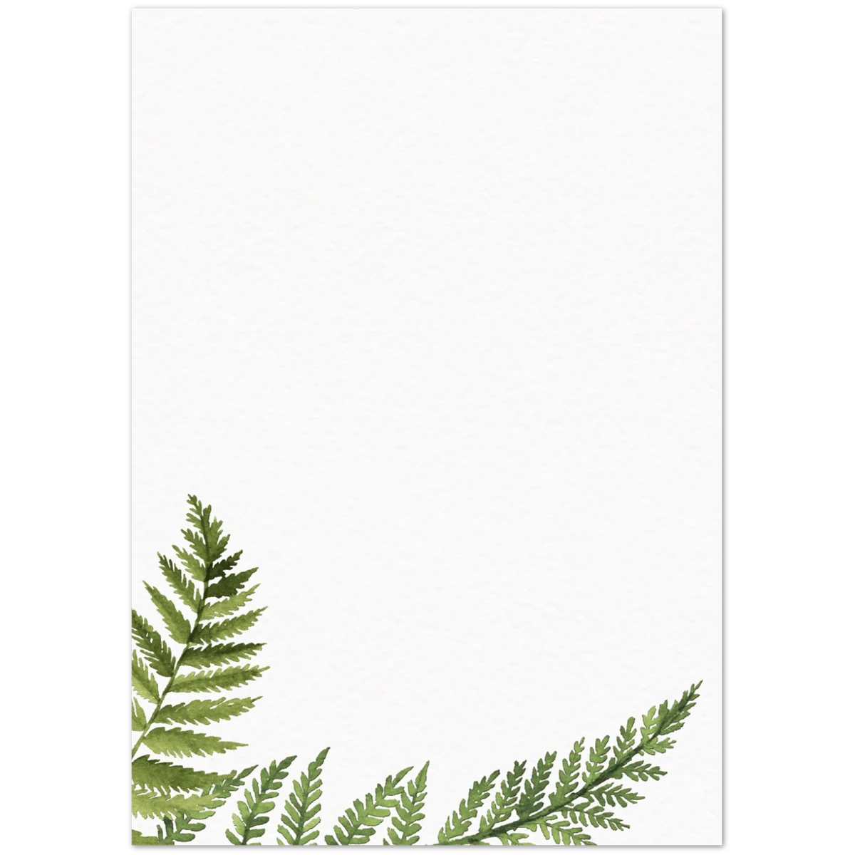 Fernwood Gratitude Muse exudes a natural serenity with its subtle watercolor depiction of delicate fern leaves, creating an ambience of calm sophistication for heartfelt messages of thanks.