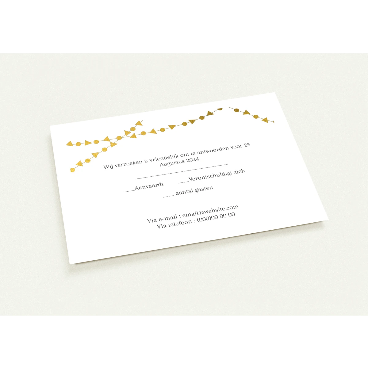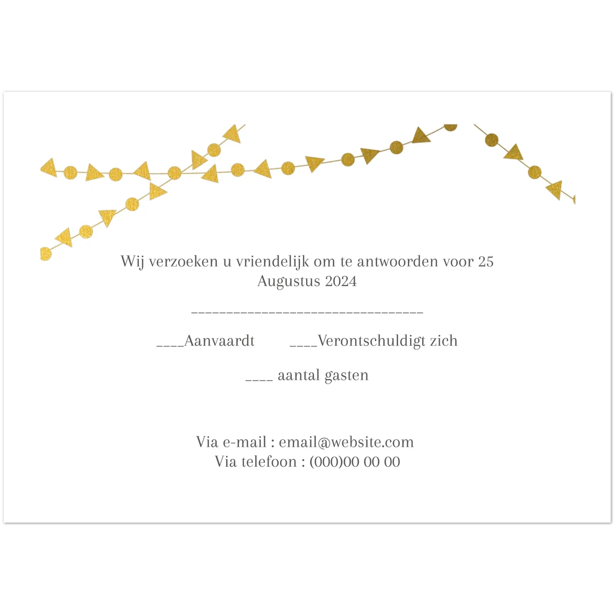 Golden Garland Gratitude features an idyllic scene of timeless love, captured in a beautiful embrace set amidst a serene meadow. Delicate golden garlands adorn the card, symbolizing the unbroken joy and thankfulness of the couple, Elaine & Peter, celebrated on their special date.