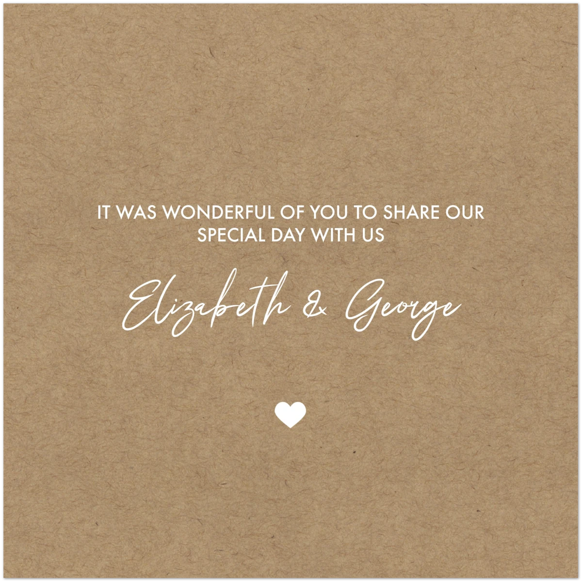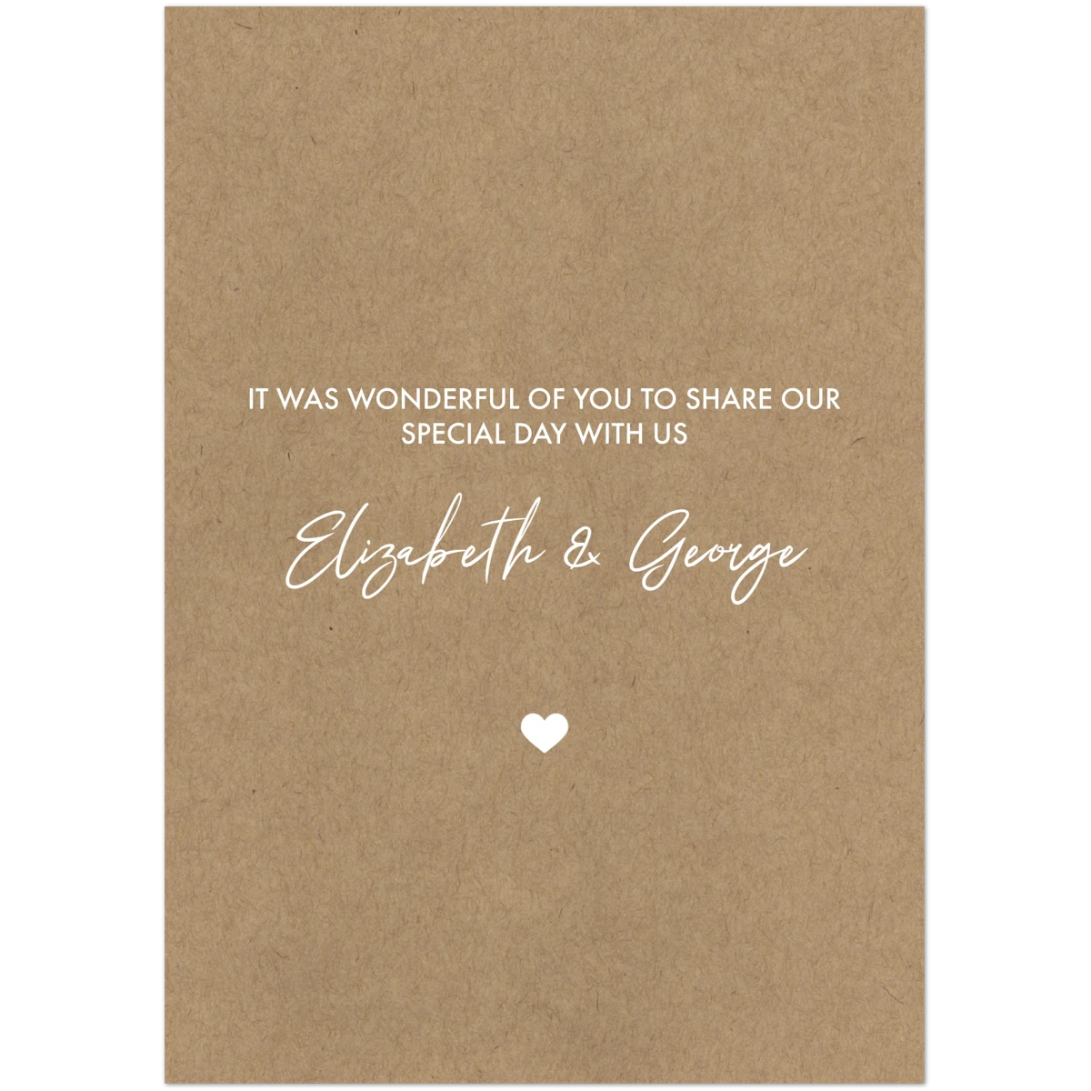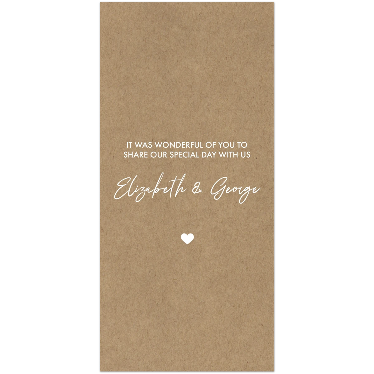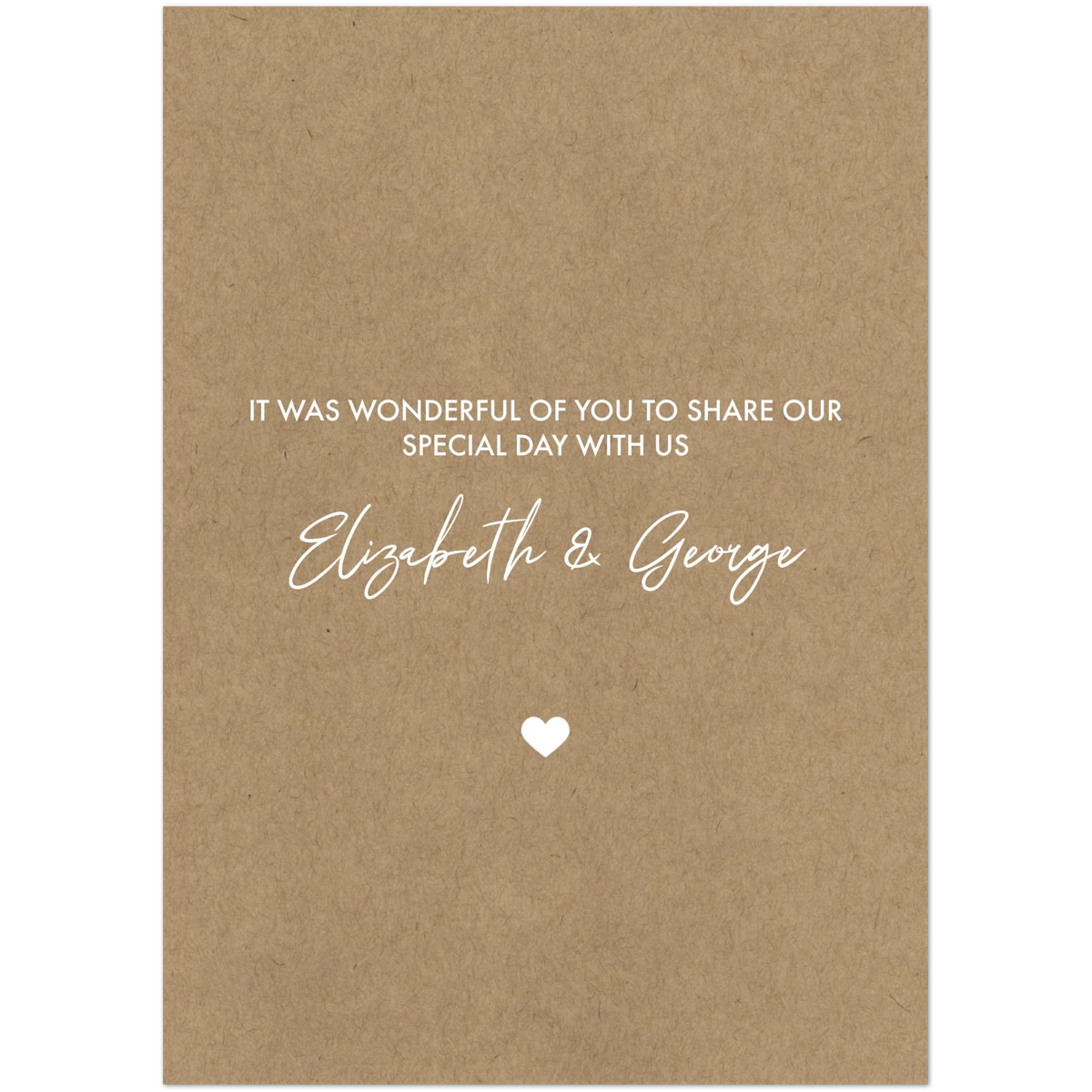 Kraft Echoes Bliss evokes a sense of heartfelt sincerity with its natural kraft paper backdrop. The black and white photograph captures a candid moment of joy, making this card perfect for expressing deep appreciation and memorable thanks.
