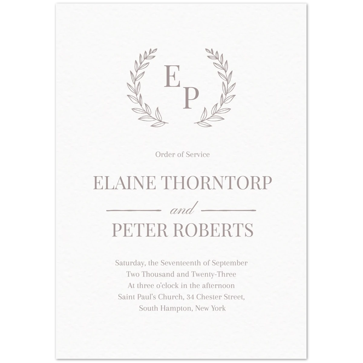 Laurel epitomizes classic sophistication with a delicate laurel wreath embracing the couple's initials, offering an elegant herald to a day of joy and unity.