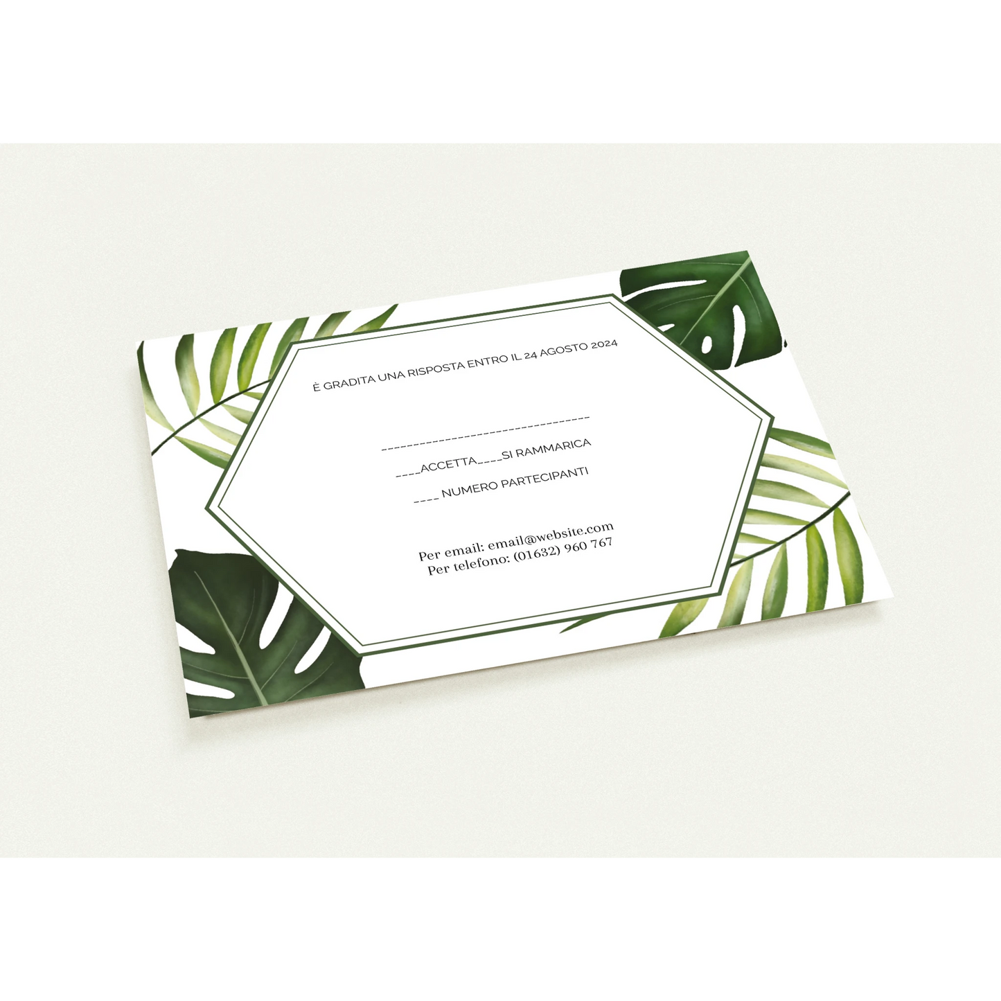 Monstera Serenity Thanks features the tranquil charm of lush monstera leaves wrapped around the joyous portrait of a newly married couple, symbolizing the heartfelt gratitude flourishing from their union.