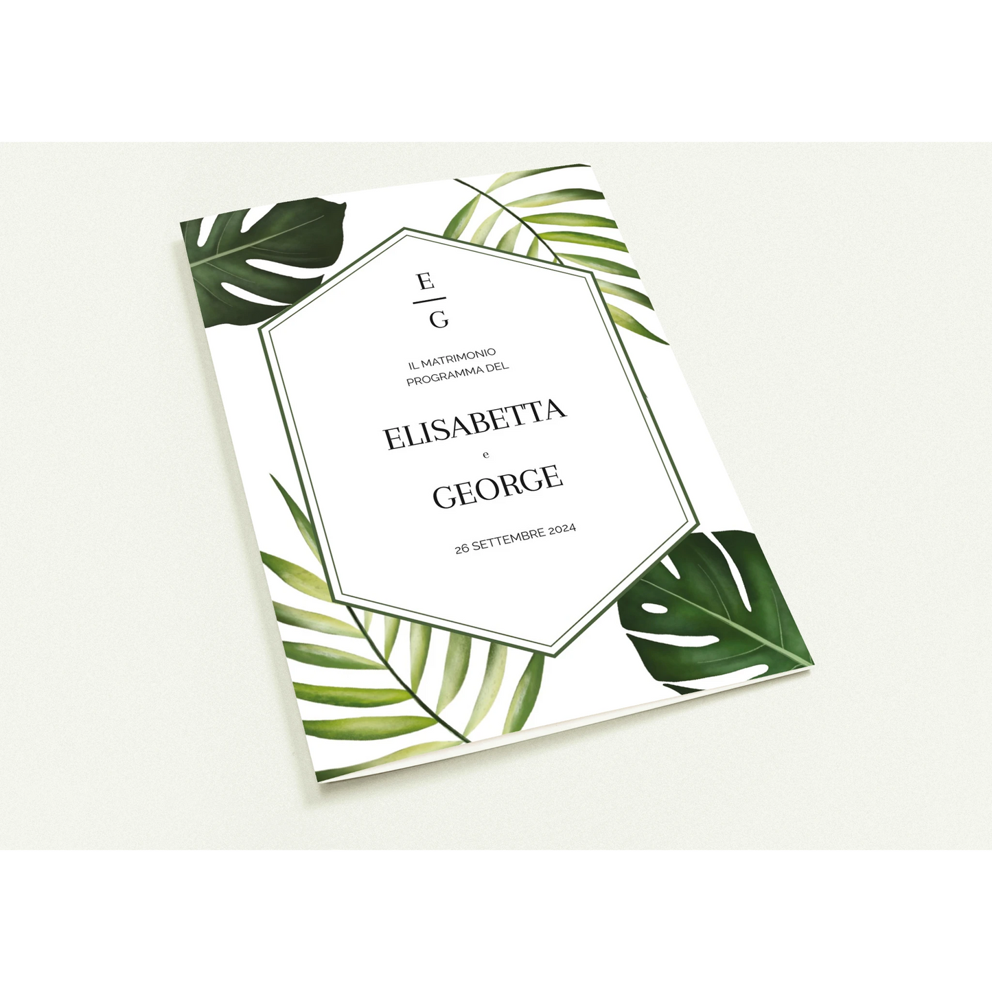 Monstera Serenity Thanks features the tranquil charm of lush monstera leaves wrapped around the joyous portrait of a newly married couple, symbolizing the heartfelt gratitude flourishing from their union.