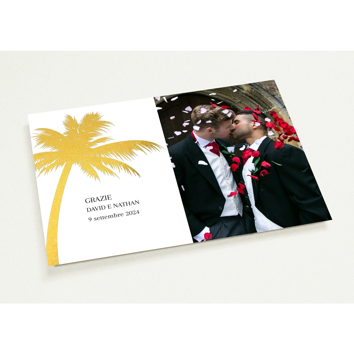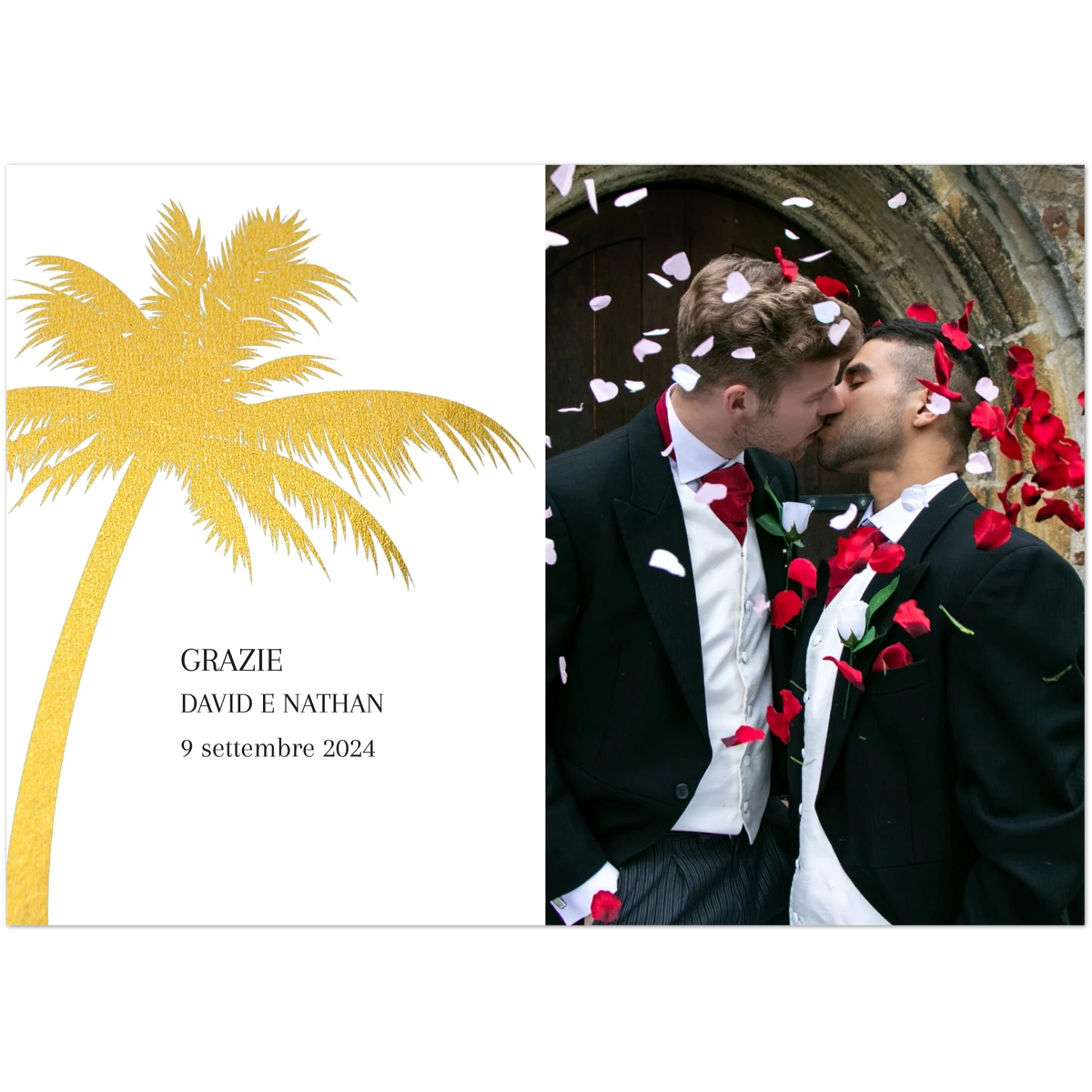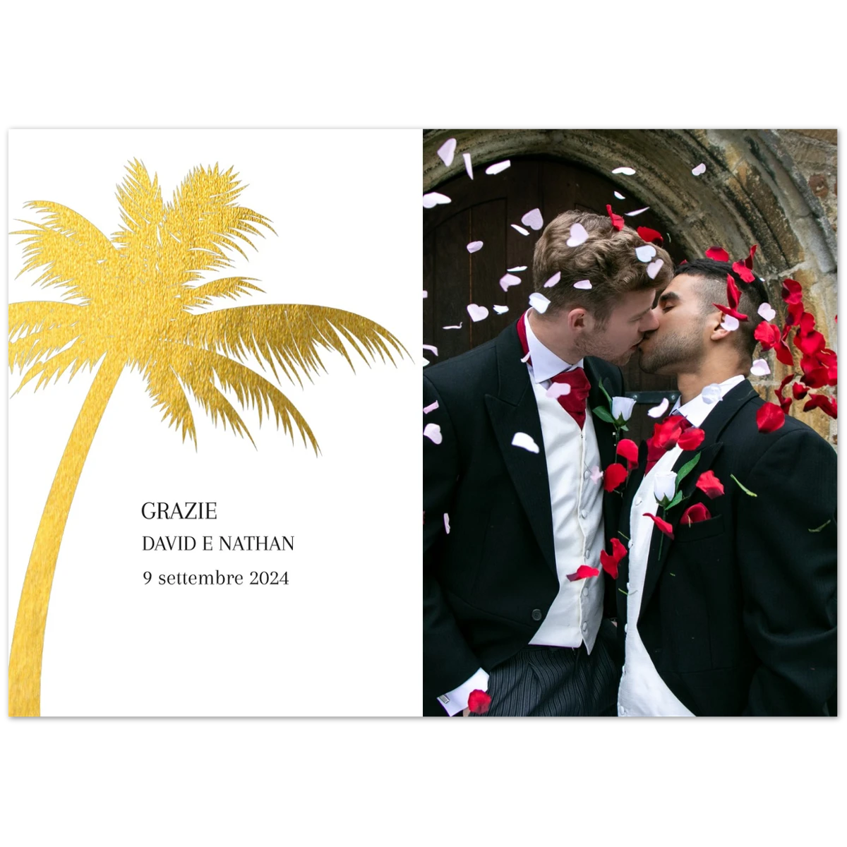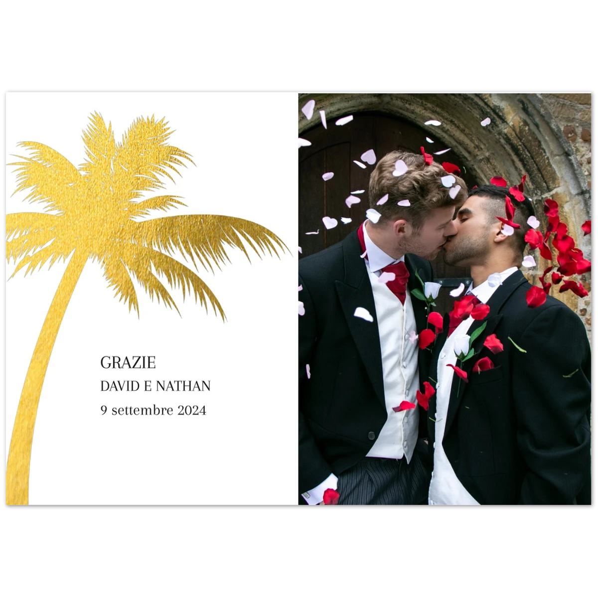 Palm Silhouette Bliss heralds warm wishes with its golden palm emblem, offering an essence of tropical serenity paired with a precious glimpse of cherished moments.