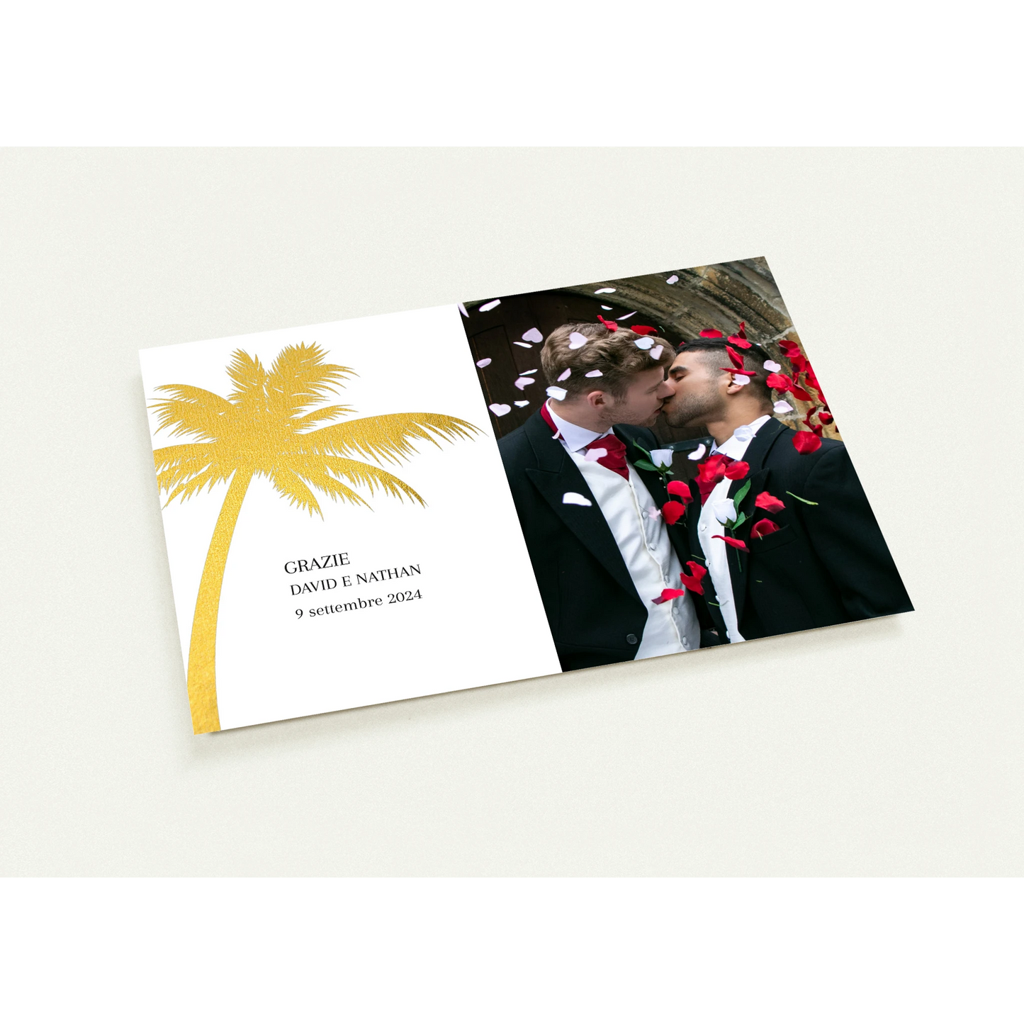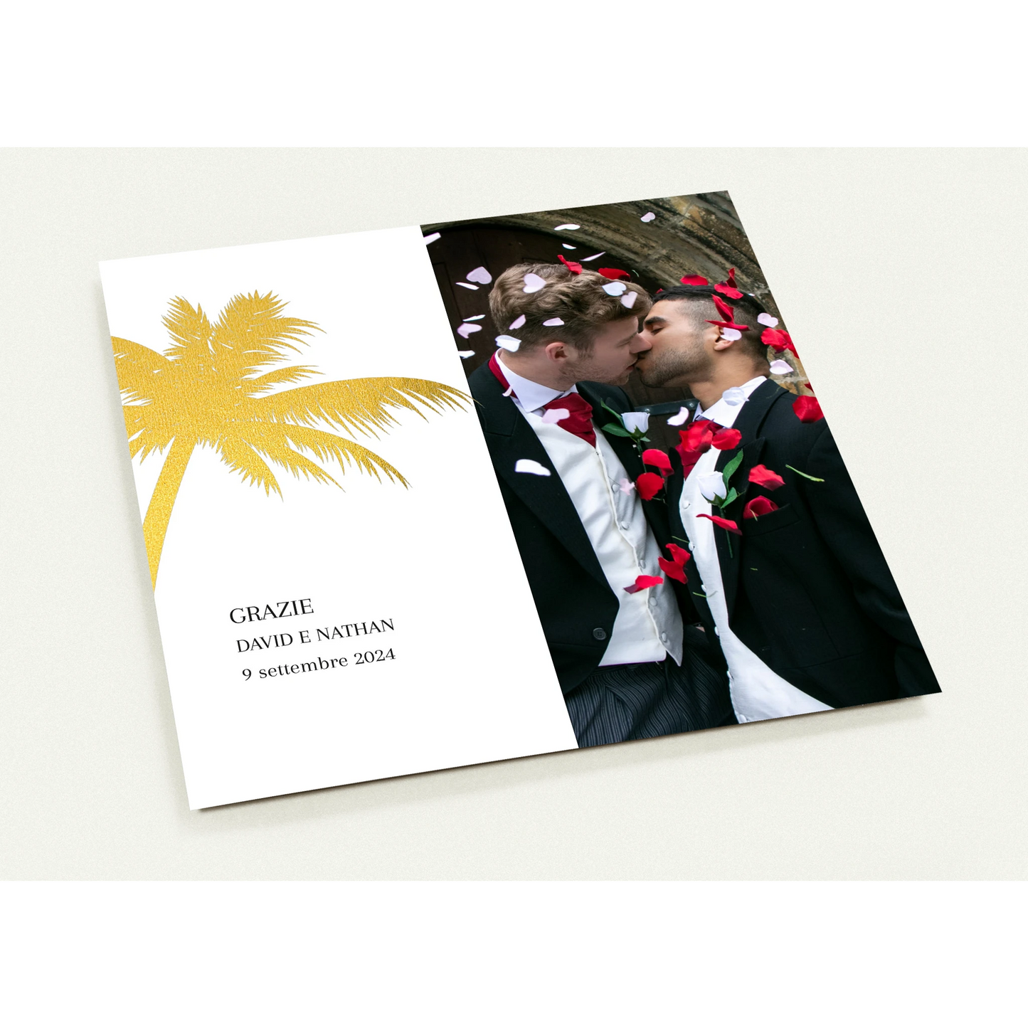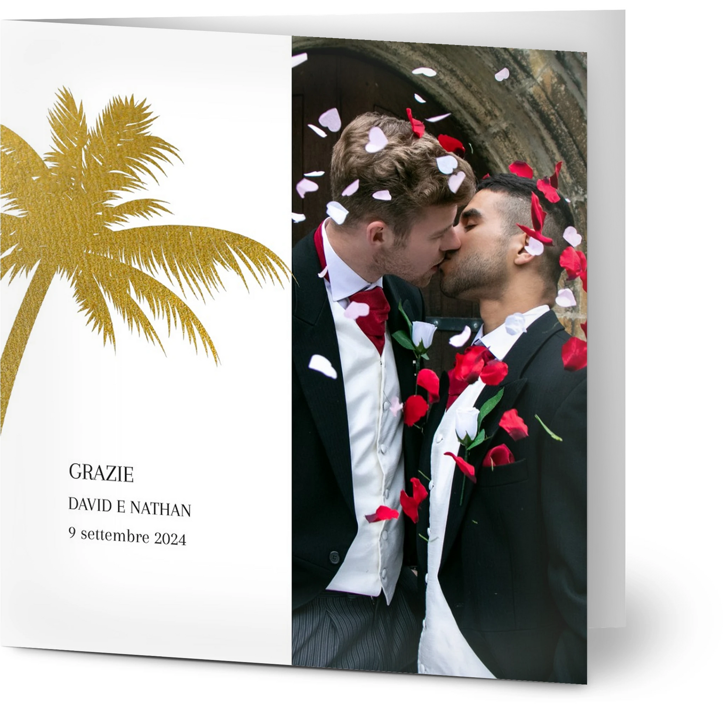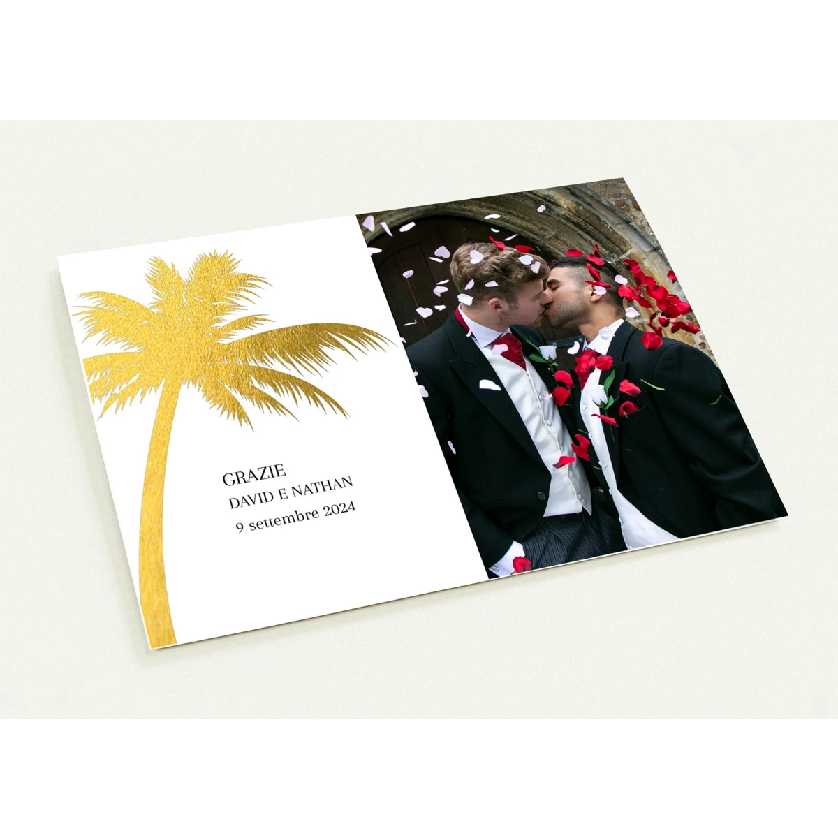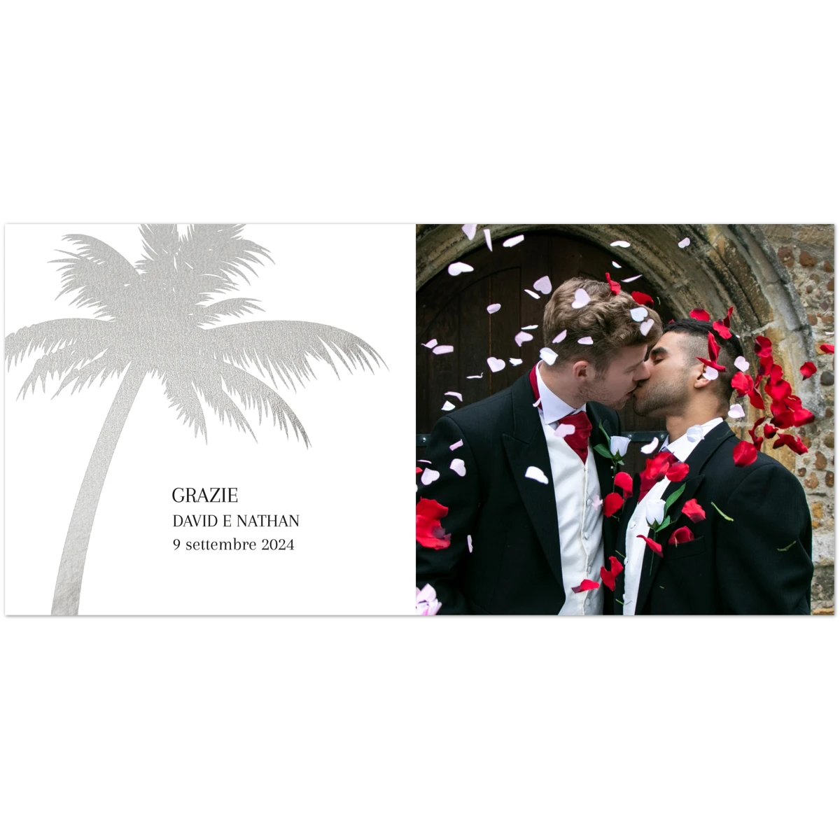 Palm Silhouette Bliss heralds warm wishes with its golden palm emblem, offering an essence of tropical serenity paired with a precious glimpse of cherished moments.