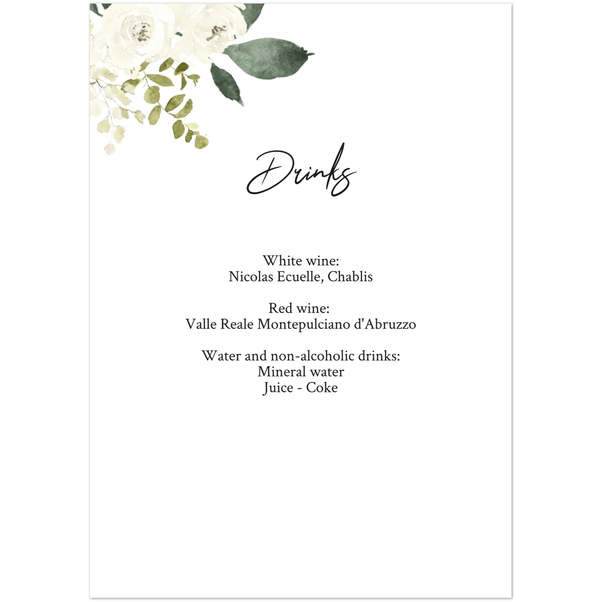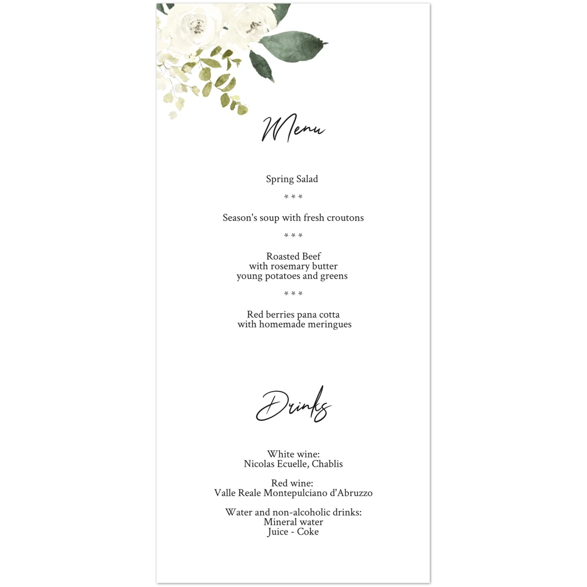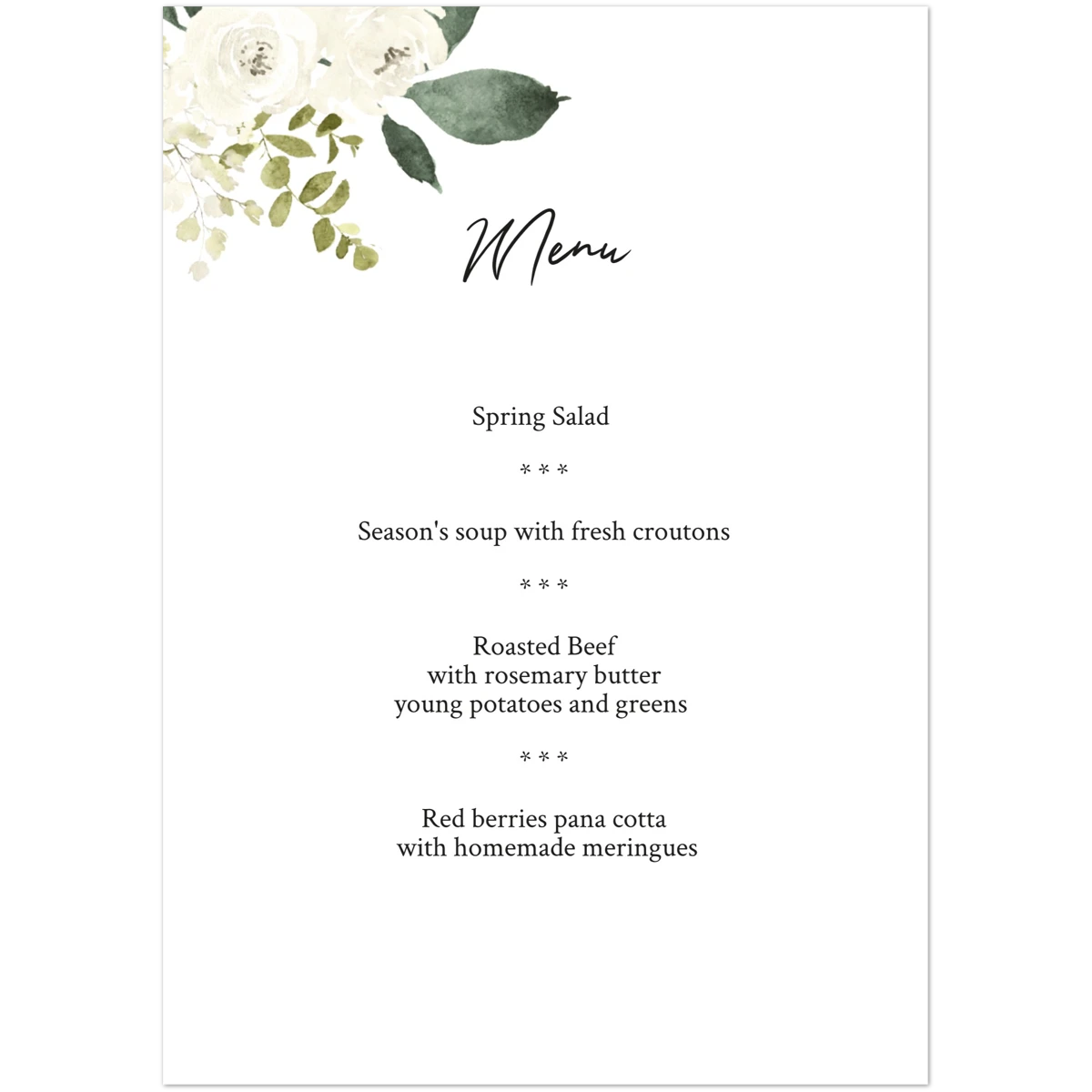 Watercolour Bloom Menu