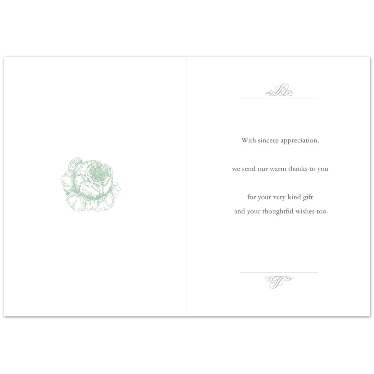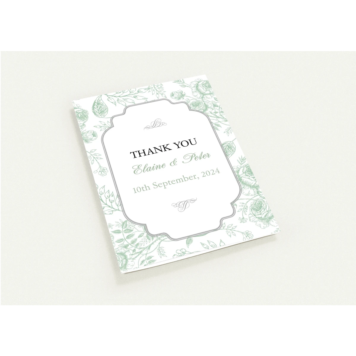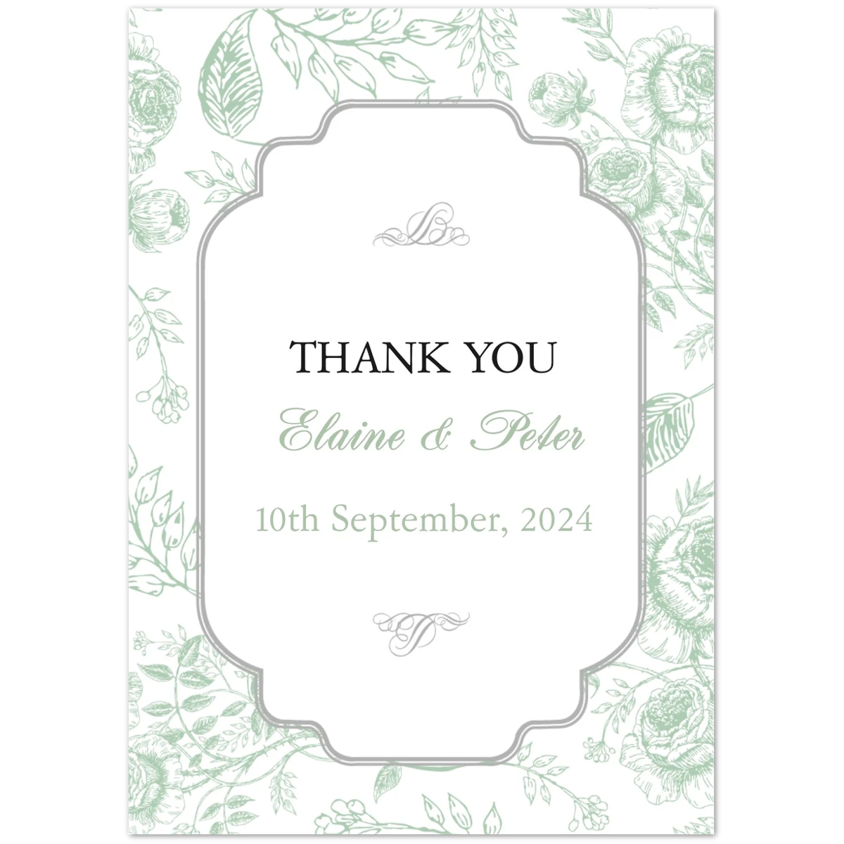 Celebrate your heartfelt gratitude with an exquisite fusion of flourishing botanicals and elegant Victorian framing, perfect for conveying your thanks with a touch of timeless grace.