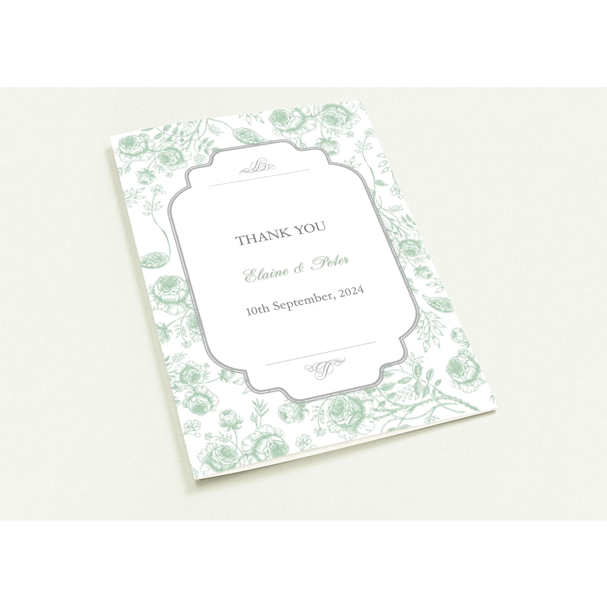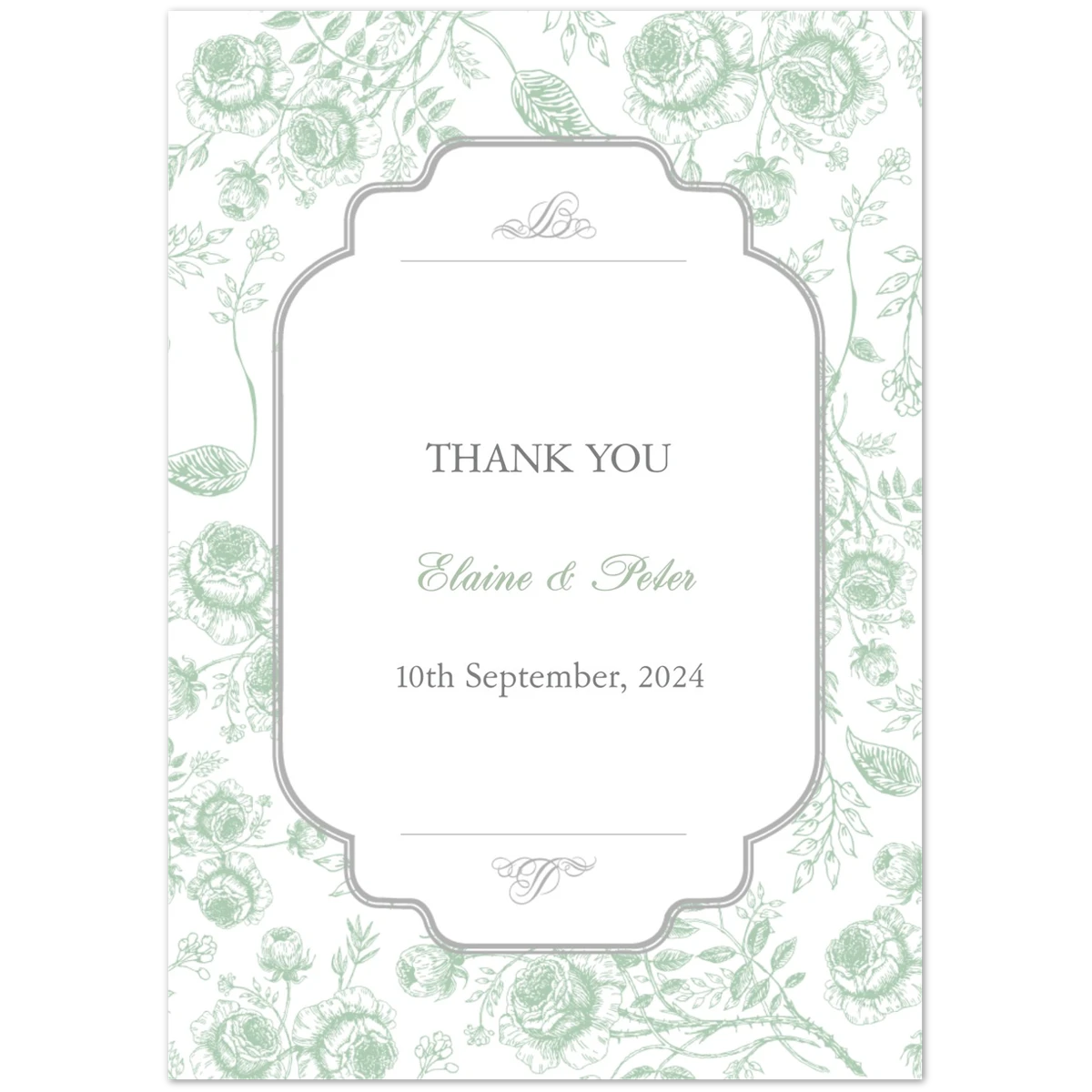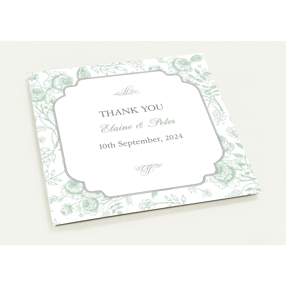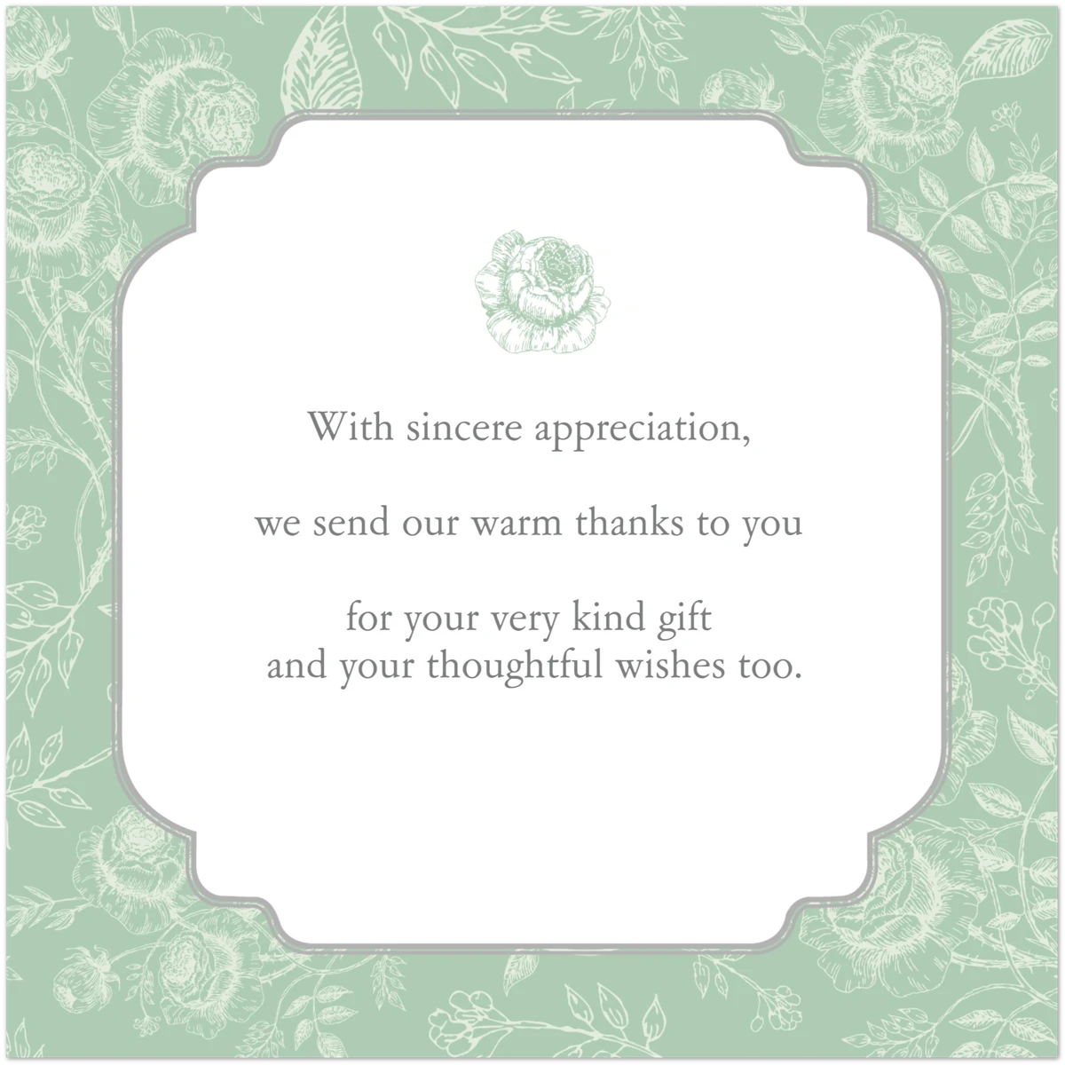 Celebrate your heartfelt gratitude with an exquisite fusion of flourishing botanicals and elegant Victorian framing, perfect for conveying your thanks with a touch of timeless grace.