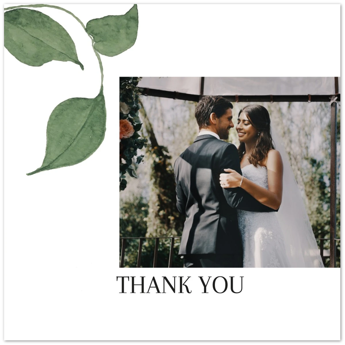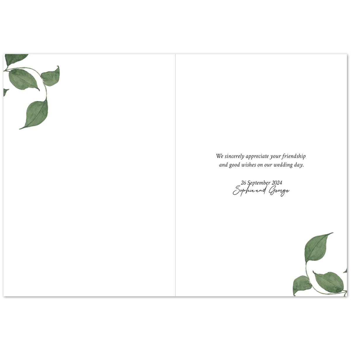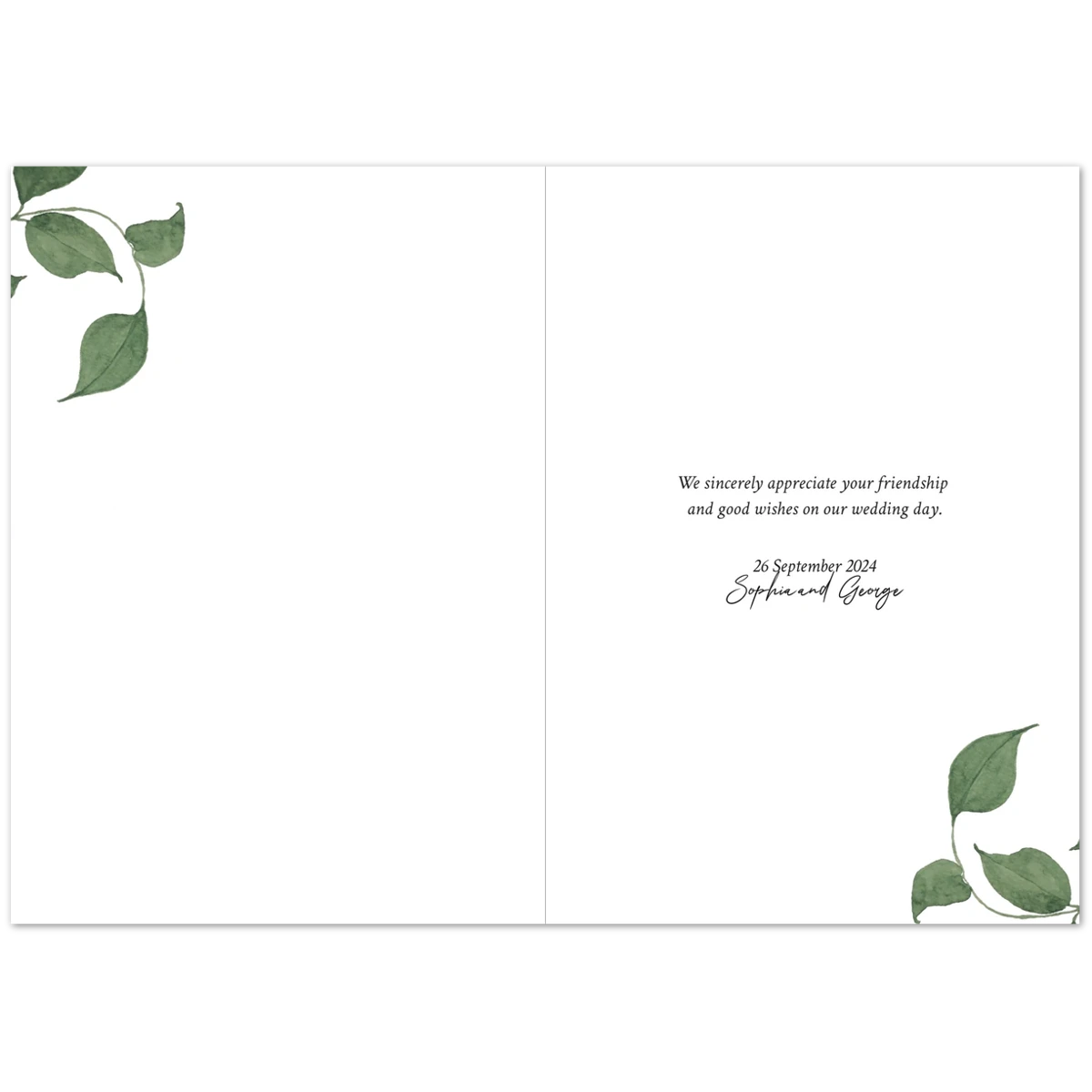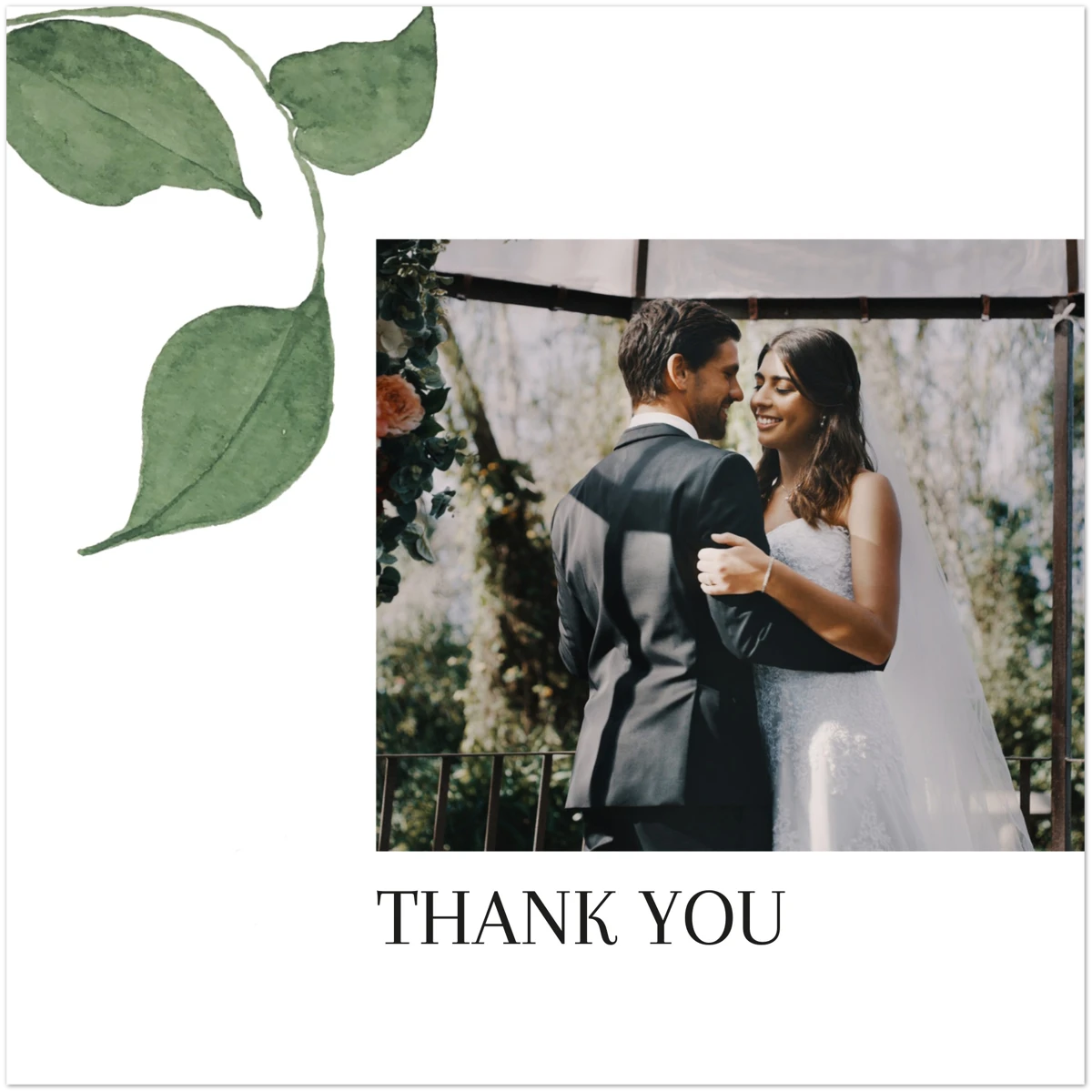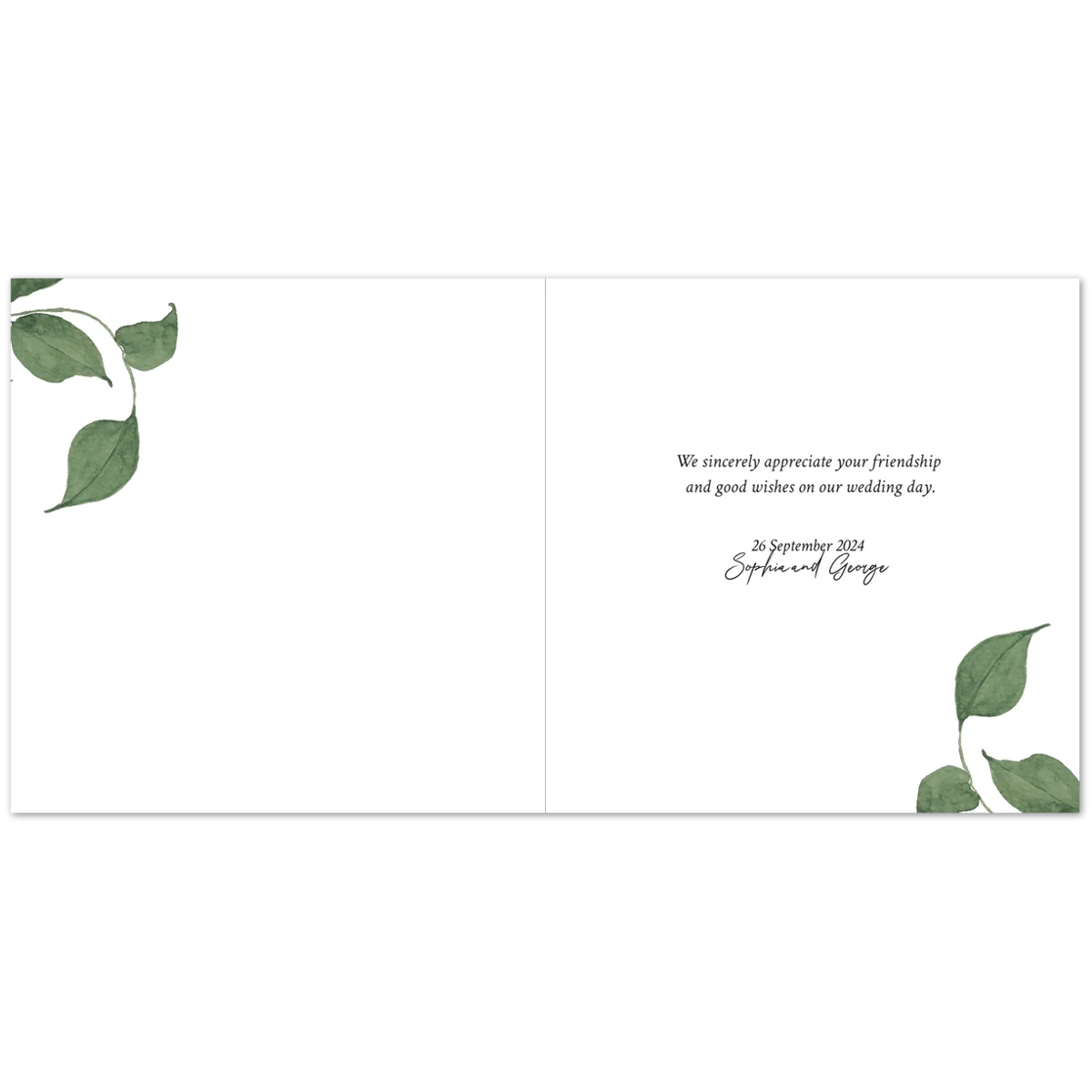Verdant Whisper Embrace features a delicate overlay of green foliage, gently framing the serene announcement of a cherished future event. This design conveys a natural elegance and an invitation to join in a celebration rooted in simplicity and organic beauty.